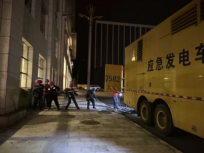 按照防疫要求,普定供电局紧急从各乡镇召集保供电人员54人,出动车辆11台,对相关隔离酒店集中隔离点1290个房间进行全面排查,检查每一个房间是否通电,将房间内的换气设备临时拆除,排查酒店低压供电系统是否存在安全隐患,将1台500千瓦应急发电车接入酒店供电系统。经过全体工作人员的连夜奋战,到4月5日6时30分,全面完成普定兴东汉唐酒店集中隔离点的保供电工作。