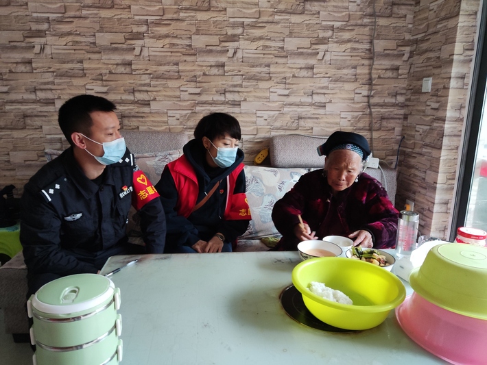 参加“温暖留守老人爱心送餐”活动的赵骏等党员同志准备离开时,80多岁的留守老人感激道:“感谢党的关怀和照顾,谢谢你们了!”