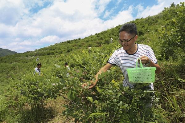 紫云自治县猫营镇普卡桥村“第一书记”吕波带领群众利用荒山荒坡种植蓝莓,在退耕还林中增加群众收益。安顺市委宣传部供图