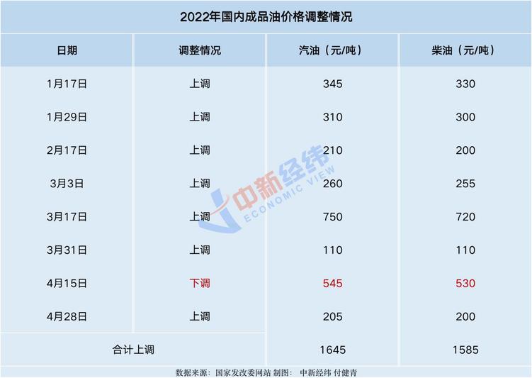 记者注意到,今年以来,国内成品油价格已进行了八轮调整,累计“七涨一跌”,汽油价格累计上调1645元/吨,柴油价格累计上调1585元/吨。在已经上调的七次价格中,最大幅度为3月17日进行的调整,其中汽油每吨上调750元,柴油每吨上调720元。如果本轮调整落实,将是年内第八次上调。