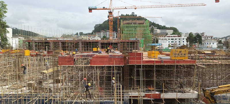 5月16日,记者走进紫云自治县印山城市综合体建设施工现场,看到吊塔林立、人声鼎沸、机声隆隆,一派繁忙紧张的施工景象。