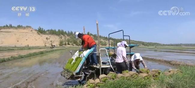 内蒙古乌审旗今年计划种植水稻超过4000亩,记者来到当地的无定河镇,合作社正组织插秧机进行插秧作业。
