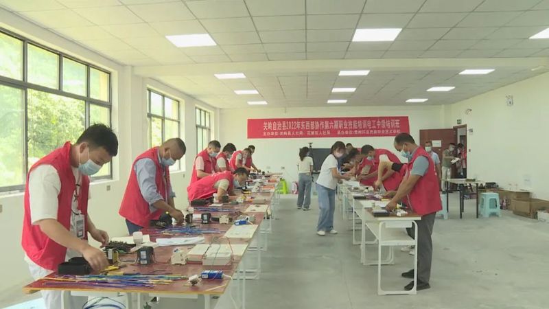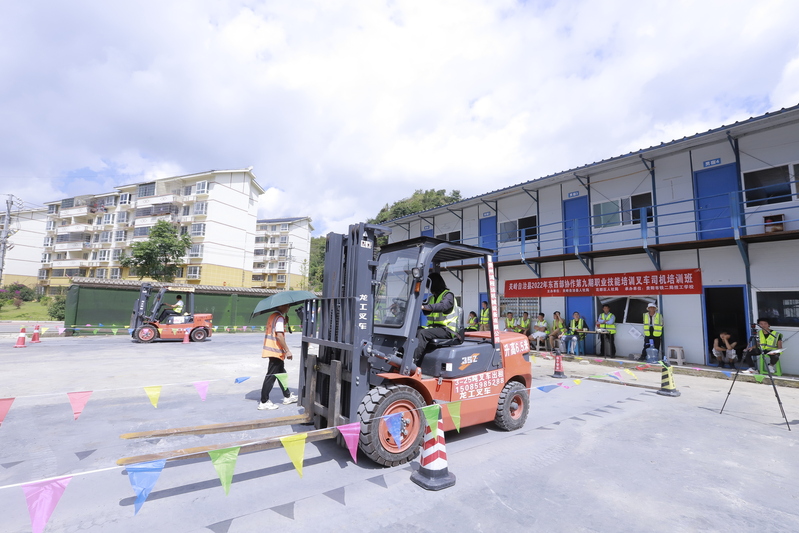 8月15日,在关岭自治县百合街道,该县2022年东西部协作第九期职业技能培训叉车、挖掘机司机培训班正在举行。培训班由关岭自治县人社局、广州市花都区人社局主办,贵阳市铁二局技工学校承办,当地50名农村青年通过理论学习、实操训练逐渐掌握叉车、挖掘机驾驶技能。