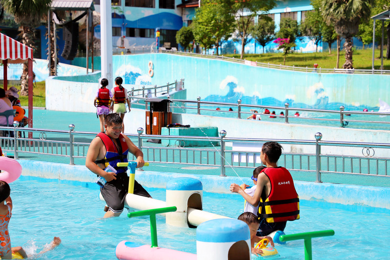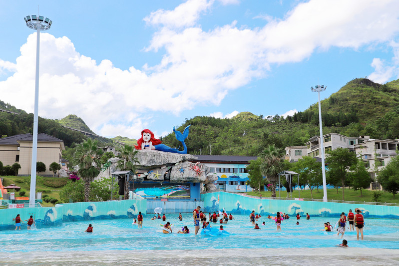 在九仙水世界,冲浪池中游人如织,大家纷纷感受着炎热季节里难得的清凉,突然阵阵浪潮卷来,打得众人“人仰马翻”,欢笑和尖叫声此起彼伏。另一侧的儿童戏水区,孩子们或在嬉戏打闹体验众多水上项目,或在大人的帮助下练习游泳,好不惬意。