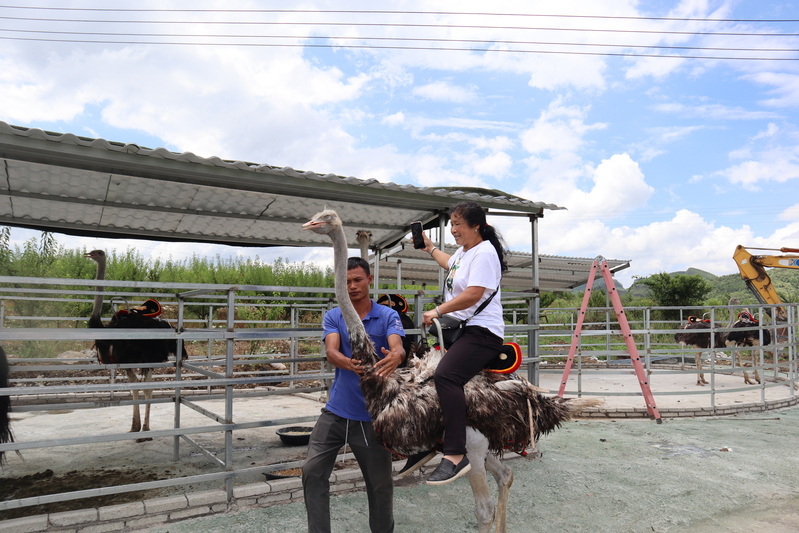 “我们一家人是从重庆来的,孩子比较喜欢这里,骑鸵鸟很受小孩子欢迎。”重庆游客王女士说,这里有山有水有花有果,小孩子能很好的亲近大自然,很不错,是暑假游的好地方。