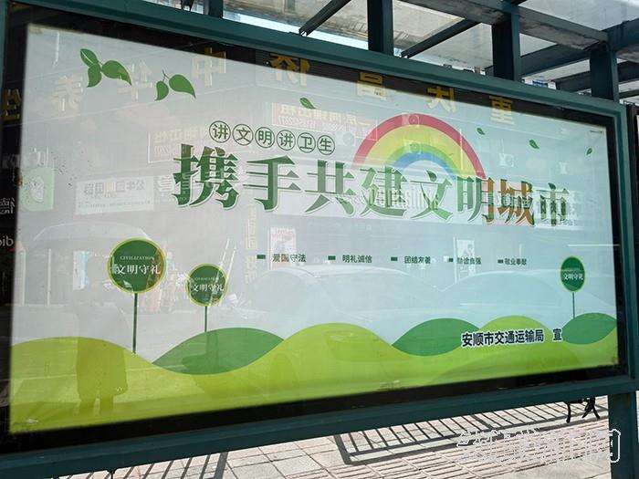 自安顺创建全国文明城市工作开展以来,主城区结合实际,围绕习近平总书记系列讲话、社会主义核心价值观、文明健康绿色环保、关爱未成年人等方面进行公益广告宣传展示,在主次干道、大街小巷、公园广场、公交站台、居民小区,利用高杆广告牌、路名牌、道路护栏等载体,设置主题多样的公益广告,内容覆盖市民生活的方方面面。