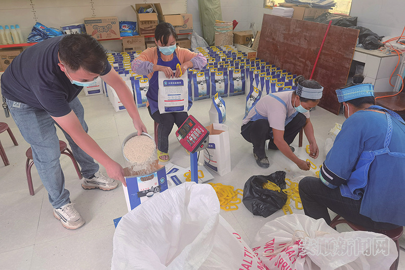 时下正是稻谷入仓,新米上市时。连日来,紫云农商银行派驻火花镇懂桑村担任驻村第一书记的伍光国组织几名村民加工生产绿色香米,以5公斤一袋包装销售。