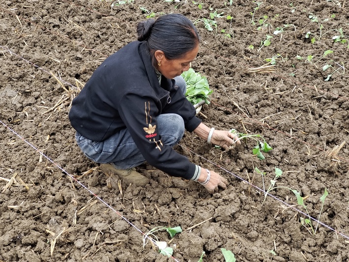 在五峰街道办中心村干龙坝组,村民陈顺芝正在地里栽种杂交油菜。他说:“早栽早收割,早打田早插秧,油菜栽种迟了会影响明天的打田插秧,这几天下着毛毛雨,栽种的杂交油菜成活率高、生长较好。”