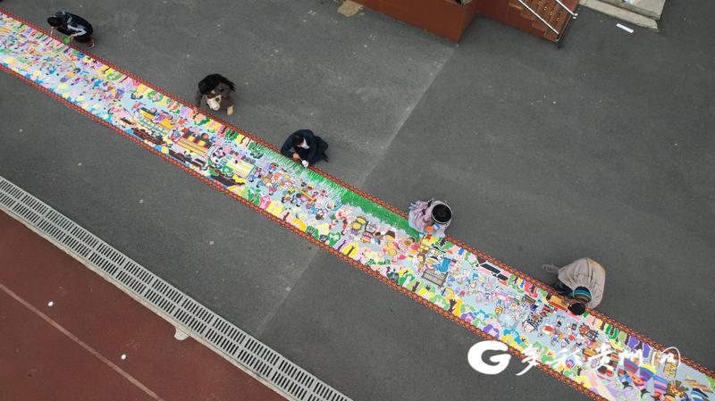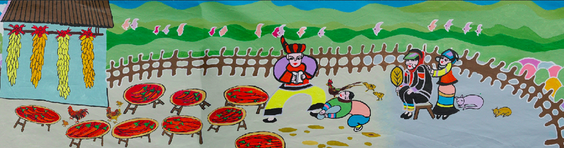 参与百米画卷创作的,还有十岁左右的学生娃,和年逾古稀的老画家。大方县农民画传承人陈开林,上世纪70年代就开始学习农民画,“第一次参与创作这么长的画卷,画出我们的盛世中国,画出我们的幸福生活。”