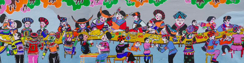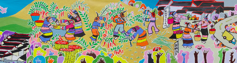 党的二十大召开前夕,贵州省大方县30余名农民画画师历时37天,绘制出一幅长100米、宽1.2米农民画卷。