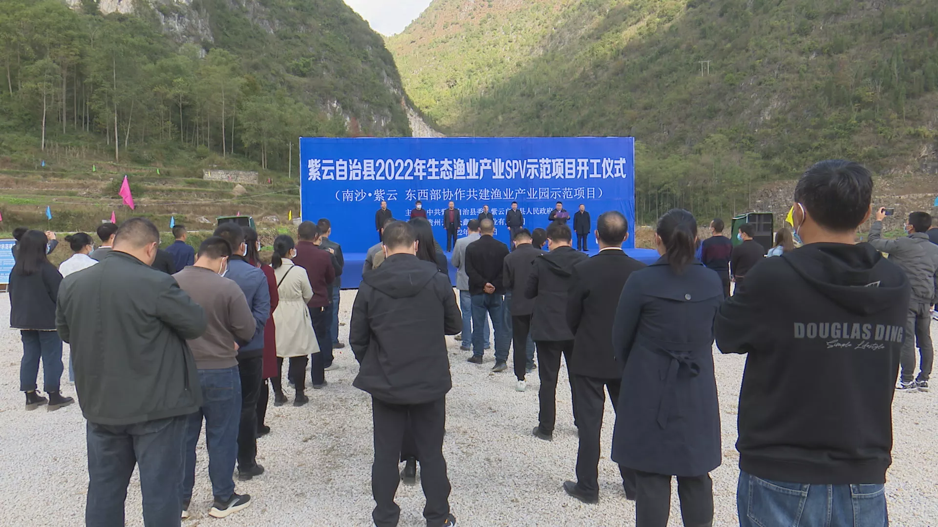 11月18日,紫云2022年生态渔业产业SPV示范项目在格凸河镇二关村开工建设。