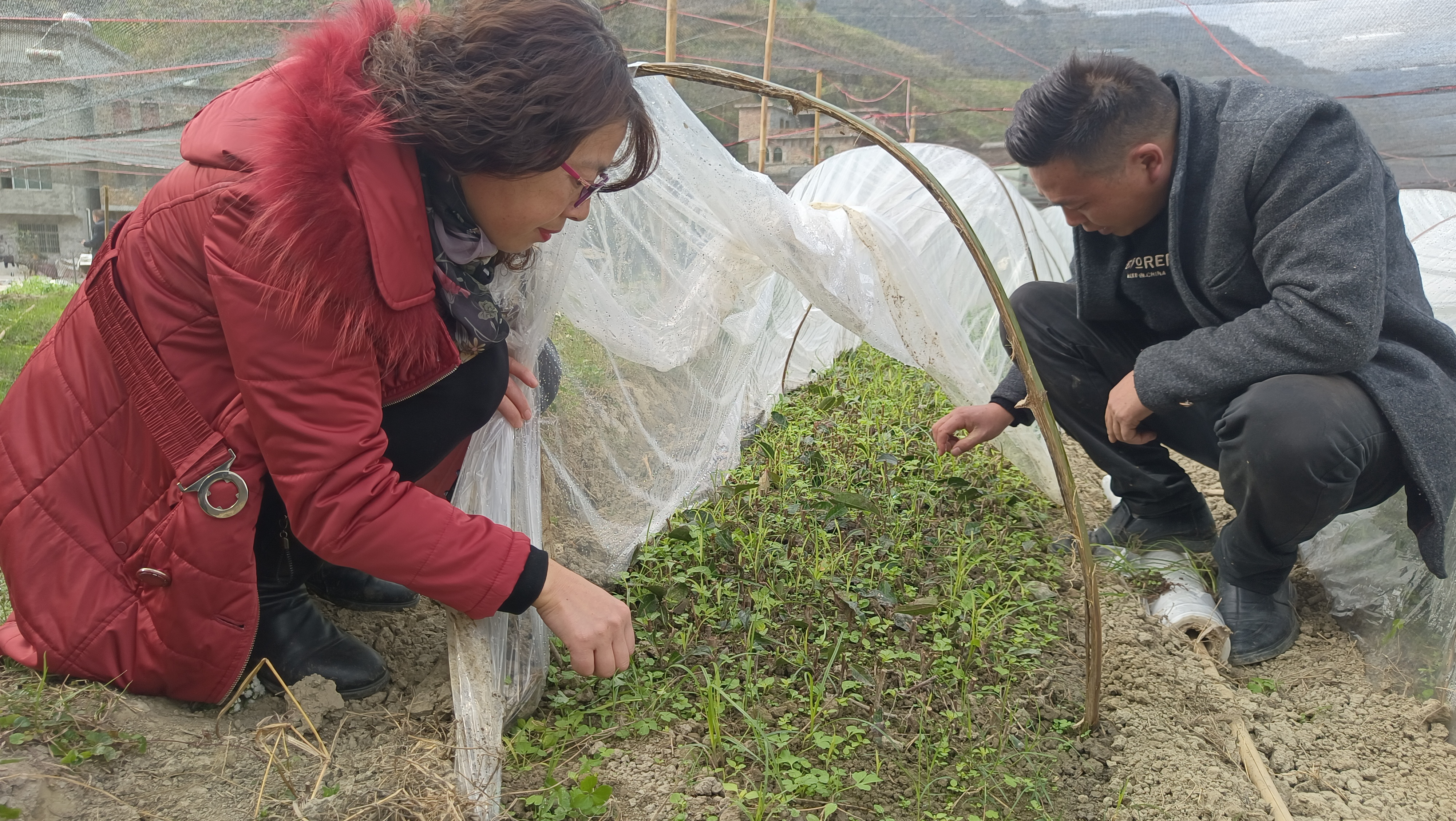 余惠查看扦插的茶苗