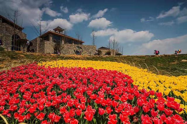 大河堡•凉都花海景区位于六盘水市钟山区大河镇境内,距六盘水市区约40分钟车程,是个以花卉为主题的景区。景区内各色花卉众多,荷兰郁金香就有80余个品种,红的、黄的、紫的、白的,各色花朵争奇斗艳,甚是好看。