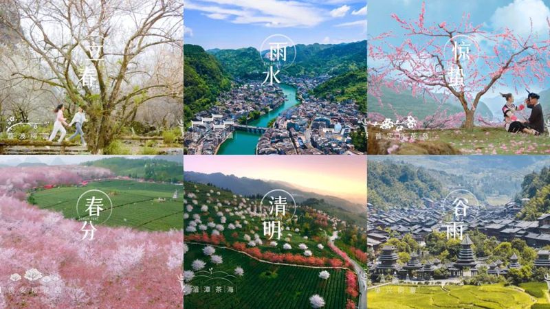 形象片里,设定了两条脉络,纵向以24节气为骨,一个季节,六个节气,遵循大自然的生长规律,让节气与美景、文化与美食,风情与习俗,交织交融,这也是对贵州特色文化的鲜活表达。