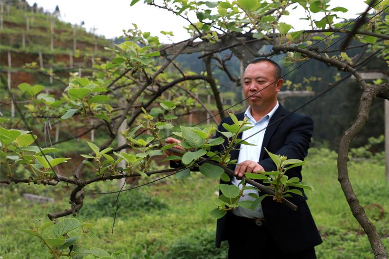 眼下,在补郎乡上寨村480余亩猕猴桃基地,绿油油的猕猴桃树片连着片,长势喜人。