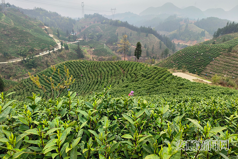 近日,记者走进普定县穿洞街道靛山村的普定县茗之源种植专业合作社茶叶基地,望茶山迷雾漫漫,绿色茶海随微风摇曳,三三两两茶农在茶树间采摘,在一块块茶园旁插着一块块特色牌子吸引眼球。