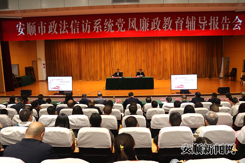 5月9日,安顺市政法信访系统党风廉政教育辅导报告会召开。市纪委市监委派驻第十五纪检监察组组长徐强作题为《严守职业底线 坚持廉洁从业》的党风廉政教育辅导报告。报告会以视频会议形式开至县(区)。