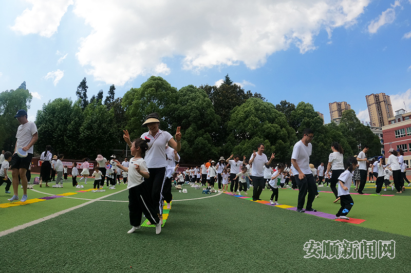 活动在师生欢快的舞蹈中拉开帷幕,随后在体智能老师的带领下,小朋友和家长们愉快的进行亲子互动,疯狂压纸板,打地鼠、快乐溜溜布等游戏深受小朋友的喜爱,尽管骄阳似火,但一阵阵爽朗的欢笑声,让活动现场热闹非凡。