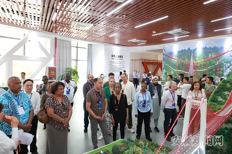 6月4日下午,由斐济、毛里求斯、希腊等19个国家及上海合作组织成员国的20多位驻华使节、高级外交官组成的参访团走进坝陵河贵州桥梁科技馆。