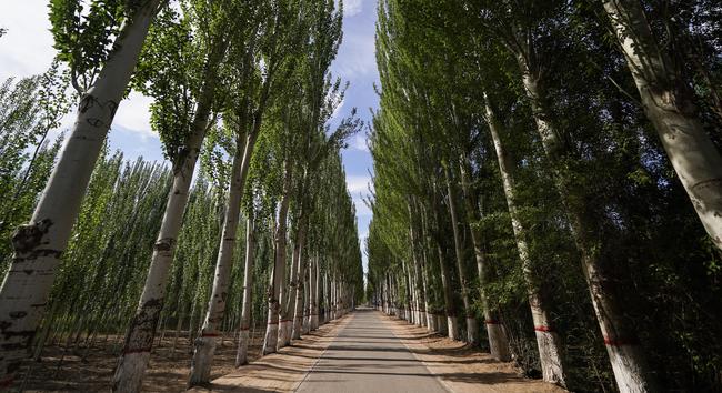 △内蒙古巴彦淖尔市临河区国营新华林场的防护林(总台国广记者李晋拍摄)