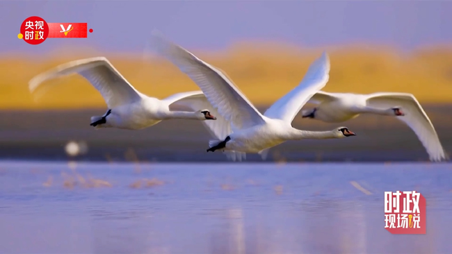 “今后我们还是要继续地努力,把我们的乌梁素海治理得天更蓝、水更绿、鸟更多、鱼更肥。”