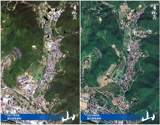 ↑2022年跟2017年相比,余村山体植被更丰富,乡村环境更宜居。