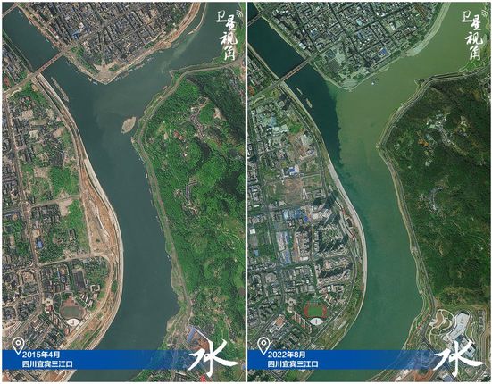 ↑2022年跟2015年相比,三江口更绿了。