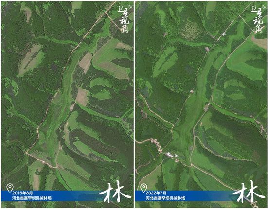 ↑2022年跟2016年相比,塞罕坝林场内石质荒山绿化更明显。