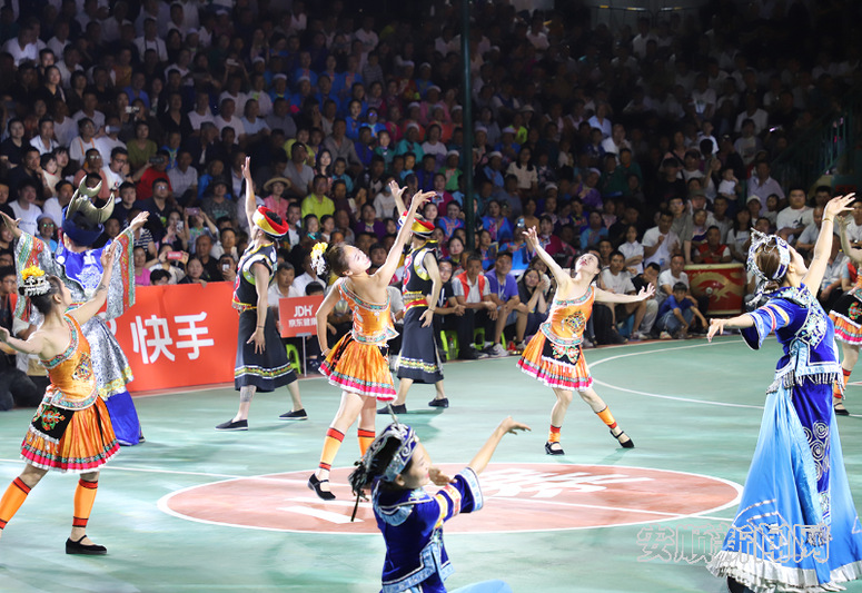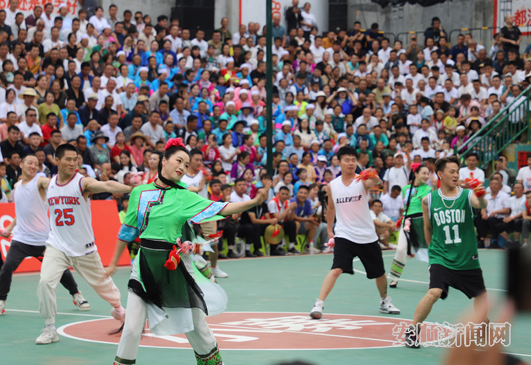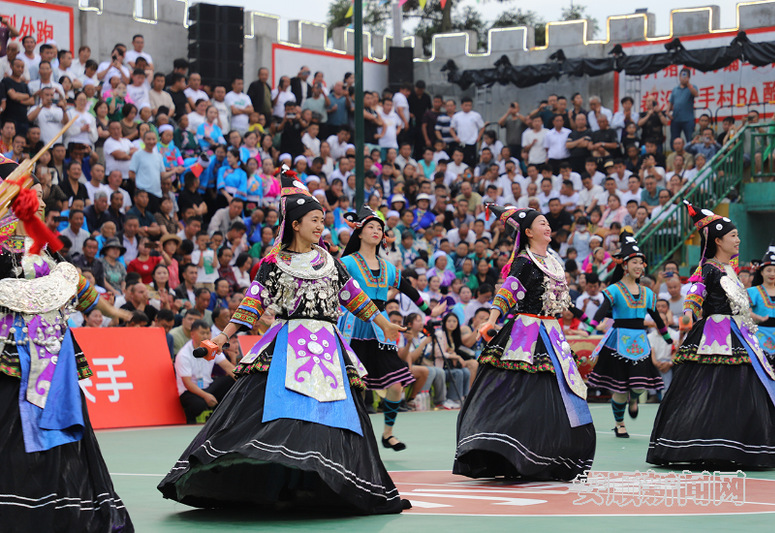 看“村BA”,不光是看打篮球。总决赛中场休息时的民族歌舞表演同样惊艳,扣篮大秀上的各种花式扣篮更是引得现场观众尖叫连连,掌声不绝。