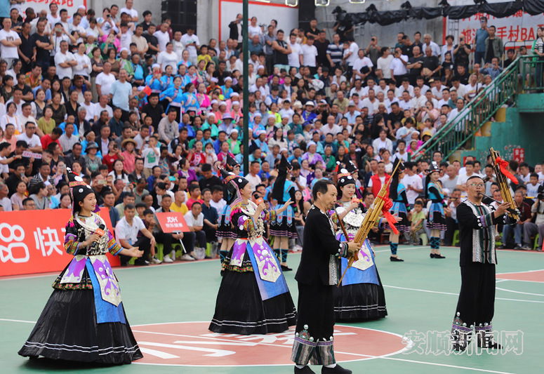 下午6时30分,开场舞结束后迎来了当日的第一场赛事,镇宁自治县代表队与大西桥镇代表队将角逐此次“村BA”的季军席位。