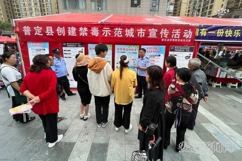 活动现场,紧紧围绕普定县创建禁毒示范城市活动为主题,通过禁毒宣传展板、悬挂禁毒宣传标语、面对面沟通交流、民警现场讲解等方式,为广大群众讲解毒品种类及危害,倡导大家在6月“禁毒宣传月”活动中积极参与各类禁毒宣传活动,学习禁毒知识,并呼吁人民群众积极向亲人朋友、左邻右舍大力宣传毒品的危害,做到家喻户晓、人人参与、人人抵制,让每一个人、每一个家庭切实做到“珍爱生命、远离毒品,健康人生、绿色无毒”,共同维护美好家园,为普定禁毒工作献策出力,齐心协力坚决打赢新时代禁毒人民战争。