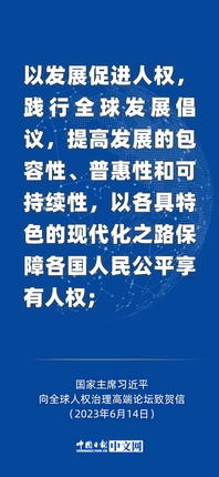 6月14日,国家主席习近平向全球人权治理高端论坛致贺信。习近平指出,当前,人类又一次站在历史的十字路口,全球人权治理面临严峻挑战。我们主张:
