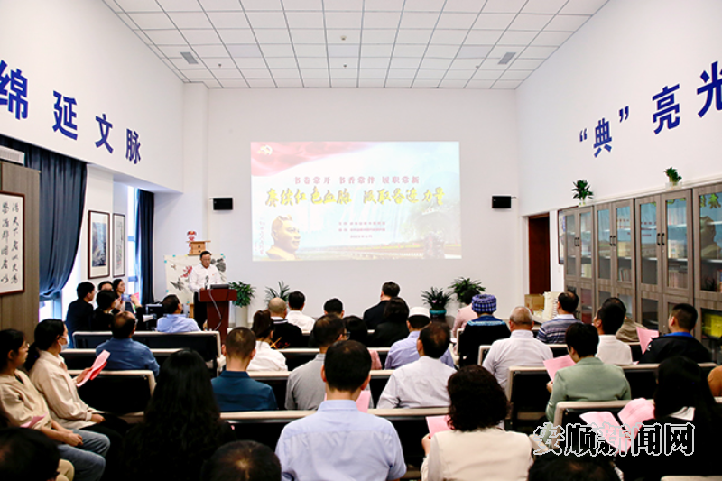 市委党史研究室主任金涛简要介绍安顺地方红色史志,分享党史书籍《红军长征追踪》,从地方史志的维度,讲授安顺红色文化的历史印记、文化渊源。