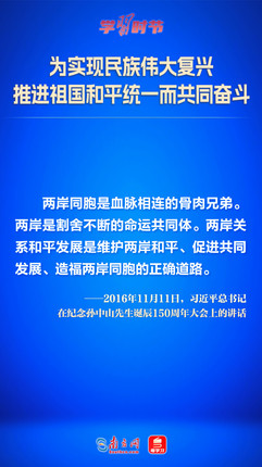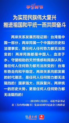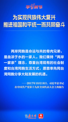 解决台湾问题、实现祖国完全统一,是中国共产党矢志不渝的历史任务,是全体中华儿女的共同愿望,是实现中华民族伟大复兴的必然要求。