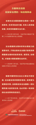 今年是贯彻落实党的二十大精神的开局之年。中共中央政治局决定从今年4月开始,在全党自上而下开展学习贯彻习近平新时代中国特色社会主义思想主题教育。习近平法治思想是习近平新时代中国特色社会主义思想的重要组成部分,人民网·中国共产党新闻网推出学法时习之·学习习近平法治思想系列策划,本篇聚焦“坚持在法治轨道上推进国家治理体系和治理能力现代化”。