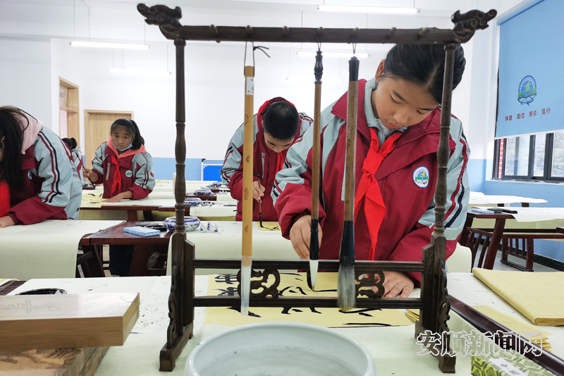 安顺实验学校经开区分校学生课后学习书法