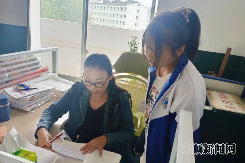 紫云自治县第二中学教师秦安吉课后为学生解疑答惑