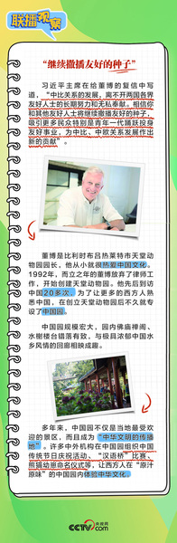 董博是比利时布吕热莱特市天堂动物园园长,他在给习主席致信中回顾了习主席和夫人彭丽媛2014年3月访比期间出席天堂动物园大熊猫园开园仪式的情景,表示中国园体现人与自然和谐共生理念,中国梦和中国的发展繁荣永远是可共享的机遇。