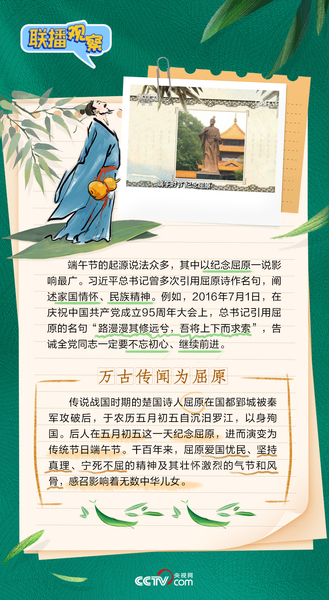 习近平总书记曾在多个场合对端午节的传统习俗、文化标识倾注关怀。央视网《联播+》特推出海报,与您品习俗、度佳节。