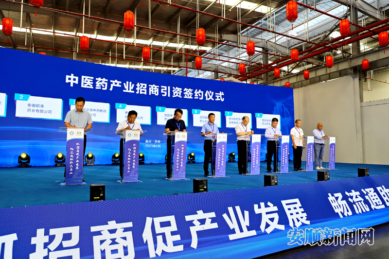 会上,贵州黔药源众鑫药业投资发展有限公司与渭源县德园堂药业有限公司、贵州黔药源中药产业发展有限公司、日照援康药业有限公司、安国市一方药业有限公司、安徽鑫泰药业有限公司、吉林省北药中药制药集团有限公司、安徽鹤康药业有限公司等7家企业签订项目合作协议,将共同致力于推进关岭中医药产业高质量发展。