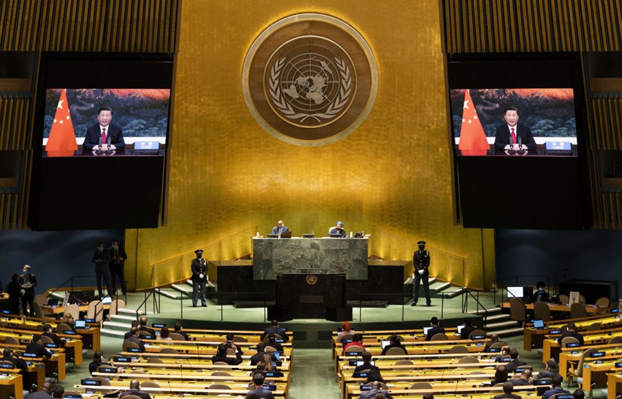 2021年9月21日,国家主席习近平在北京以视频方式出席第七十六届联合国大会一般性辩论并发表题为《坚定信心 共克时艰 共建更加美好的世界》的重要讲话。