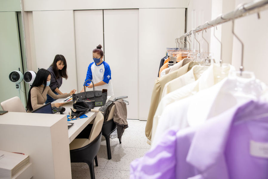 客商在浙江省绍兴市柯桥区中国轻纺城市场内选购服装(2022年11月11日摄)。新华社记者江汉摄