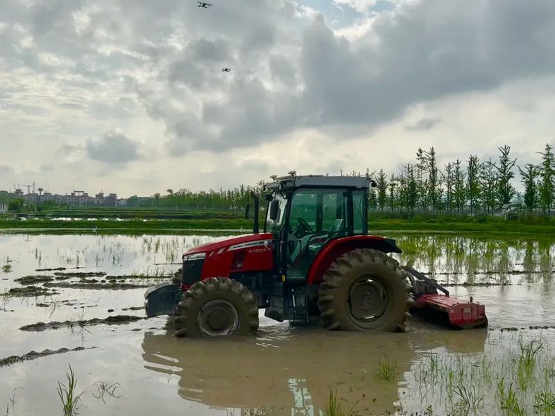 浙江省金华市东阳市城东街道寀卢村的一台无人驾驶耕地机。静玄摄