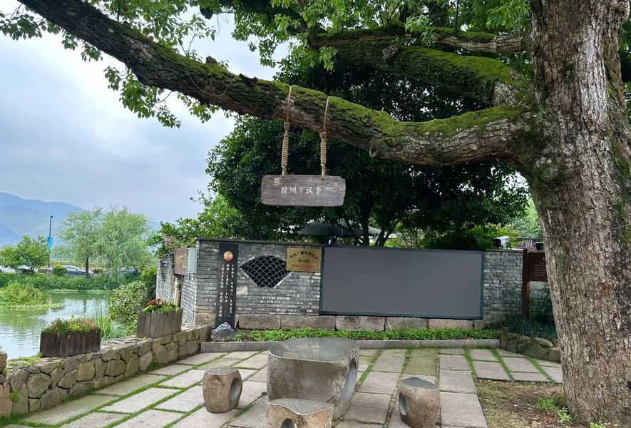 浙江省杭州市余杭区小古城村的“樟树下议事”木制字牌。静玄摄