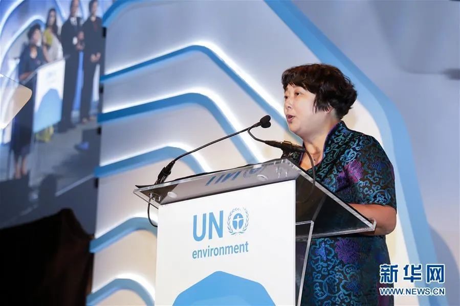 2018年9月26日,联合国环境规划署“地球卫士奖”颁奖典礼在美国纽约举行,浙江省安吉县递铺镇鲁家村村民裘丽琴在颁奖仪式上发表获奖感言。新华社记者李木子摄