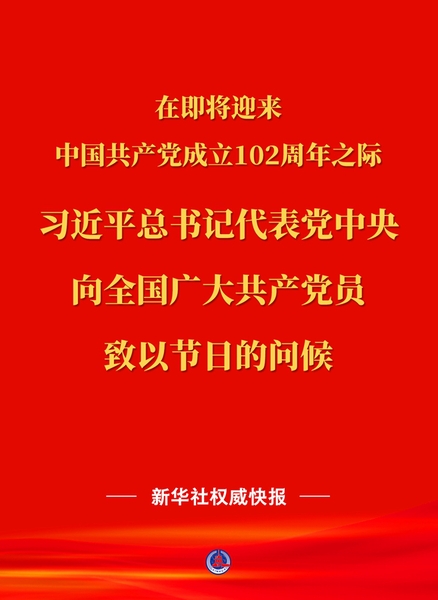 在即将迎来中国共产党成立102周年之际,习近平总书记代表党中央,向全国广大共产党员致以节日的问候。