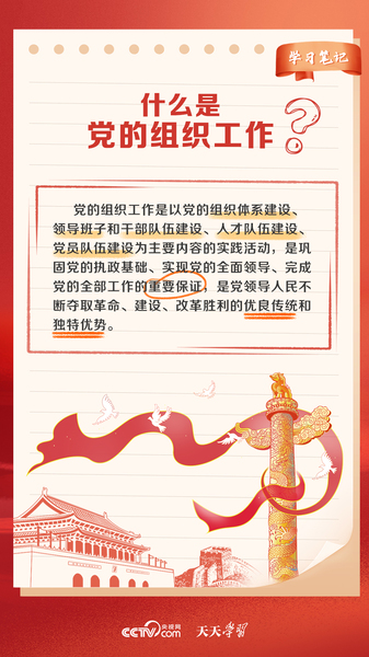 党的力量来自组织,组织严密是党的光荣传统和独特优势,正如习近平总书记所说,党的全面领导、党的全部工作要靠党的坚强组织体系去实现。什么是党的组织工作?全国组织工作会议是个怎样的会议?《天天学习》带您了解。