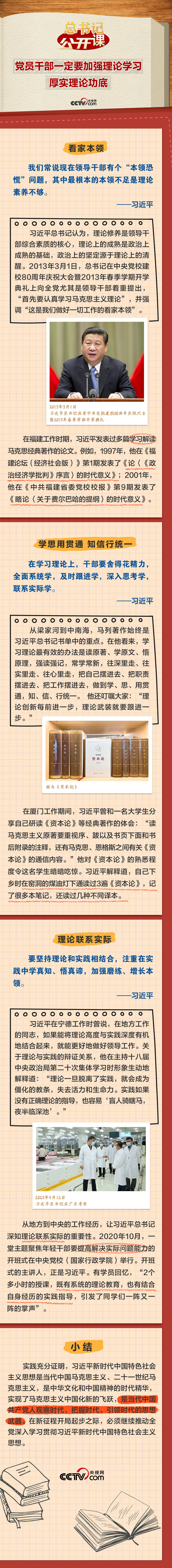 习近平总书记高度重视对党员干部理论学习能力的培养。他说:“党员干部一定要加强理论学习、厚实理论功底,自觉用新时代党的创新理论观察新形势、研究新情况、解决新问题,使各项工作朝着正确方向、按照客观规律推进。”这一期《总书记“公开课”》聚焦总书记关于理论学习的深邃思考,让我们一起领悟。