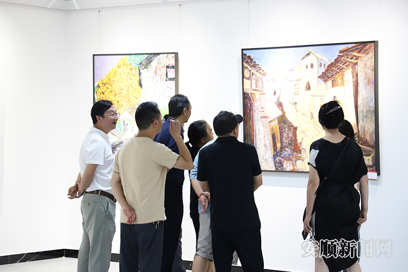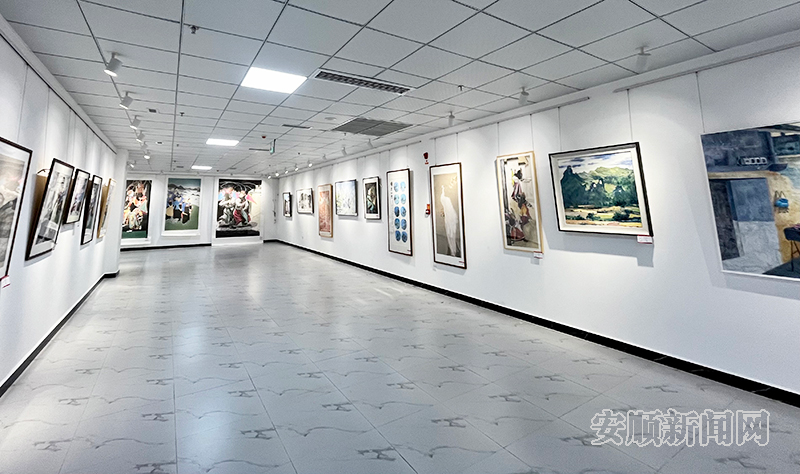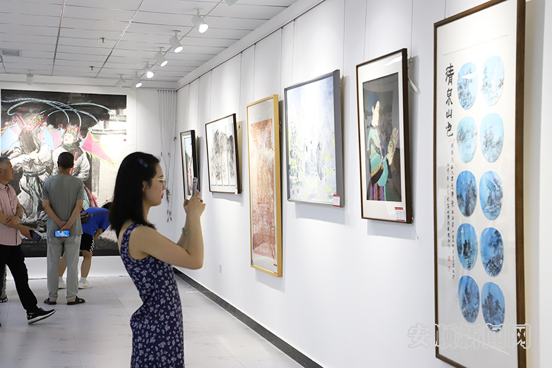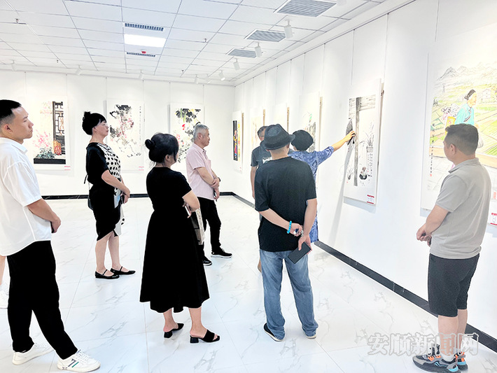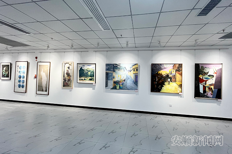 中国画、油画、版画、雕塑、水彩……一幅幅美术作品生动展现了安顺人文风光、人物精神风貌、重大节日活动以及屯堡文化等,以画述说大美安顺,以情共筑家乡美好生活,以展汇聚浓浓屯堡乡愁。观展群众徐慧江表示,“这些画作展现了我们安顺的人文风光、历史风貌和奋进精神,也展现了安顺悠久的历史和深厚的地戏文化,让我印象非常深刻!”