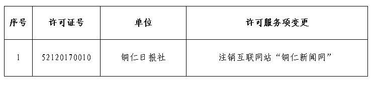 2023年6月,贵州省互联网信息办公室依法对相关单位提交的许可服务项变更申请开展审批,同意有关许可服务项变更事宜,现公示如下: